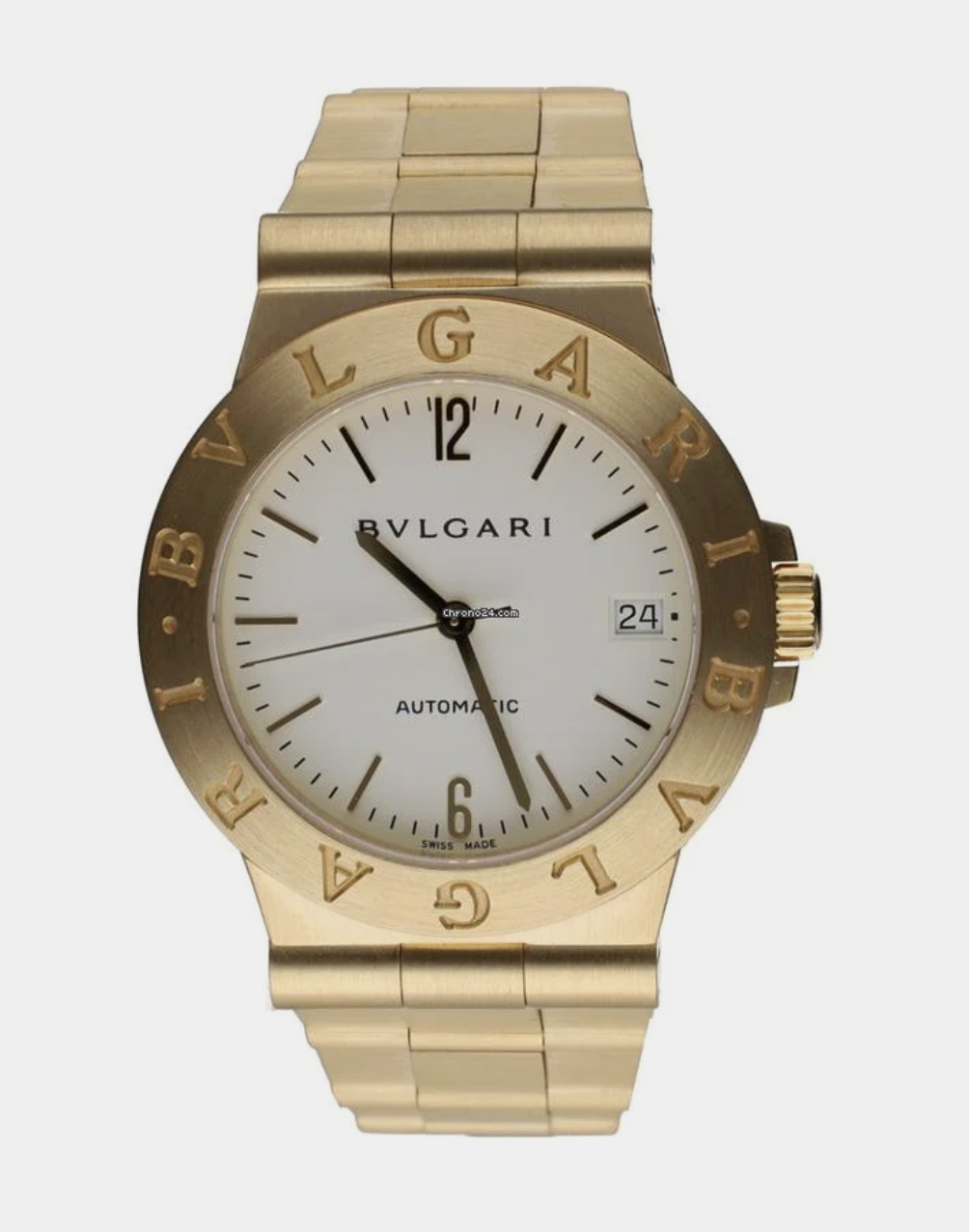 불가리 디아고노 스쿠바 같은 풀 골드 모델에서 가장 중요한 변수는 케이스가 아니라 브레이슬릿이다.